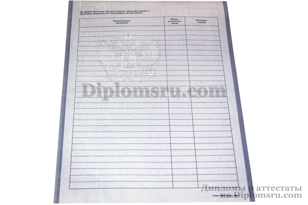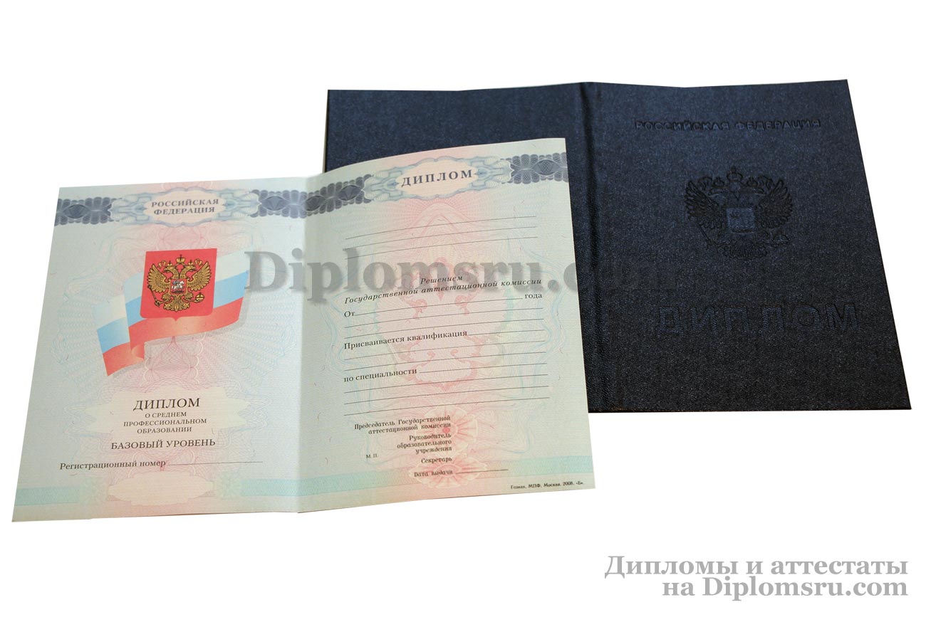 У нас Вы можете купить диплом среднего профессионального образования с окончанием техникума или колледжа в 2007, 2008, 2009, 2010 годах. Заполняется профессионалами, учебная программа и название специальности соответствуют данному периоду, заверяется печатью техникума (колледжа), подписями председателя Госкомиссии и директора ССУЗа. Диплом выглядит так, как в учебном заведении!