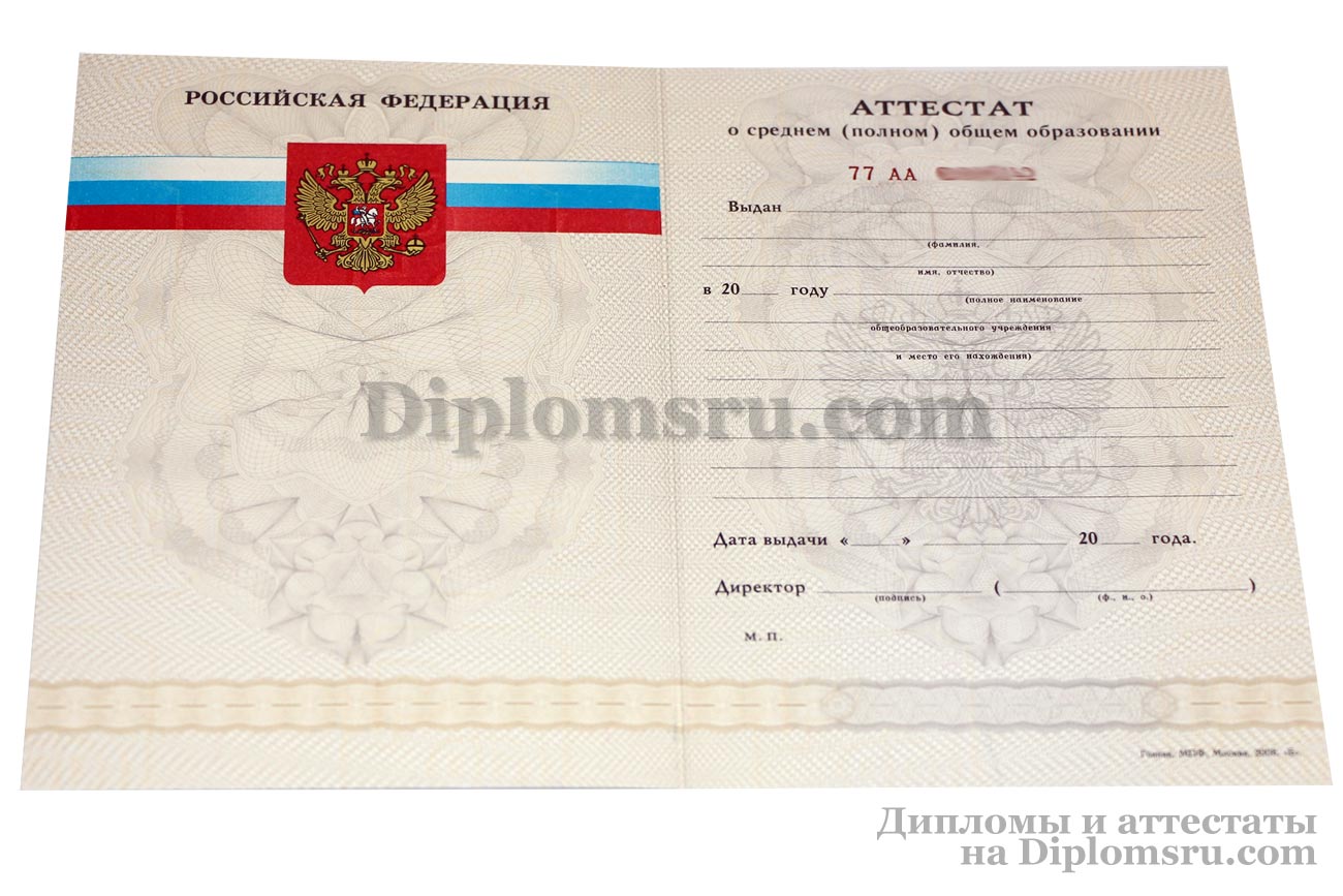 Диплом о среднем образовании 2014-2026 без QR кода с приложением, в твердой обложке. «Гознак». |