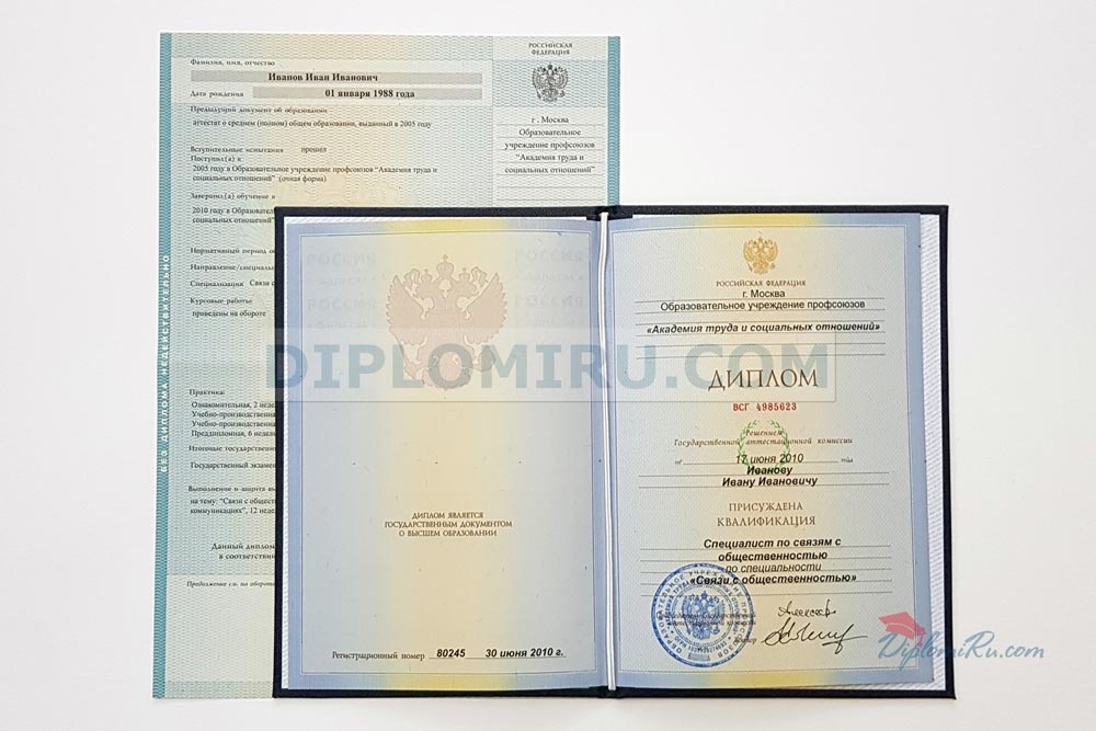 Диплом о высшем образовании СССР (РСФСР) до 1996 года, с приложением, в твердой обложке. «Гознак». В наличии: специалист. |